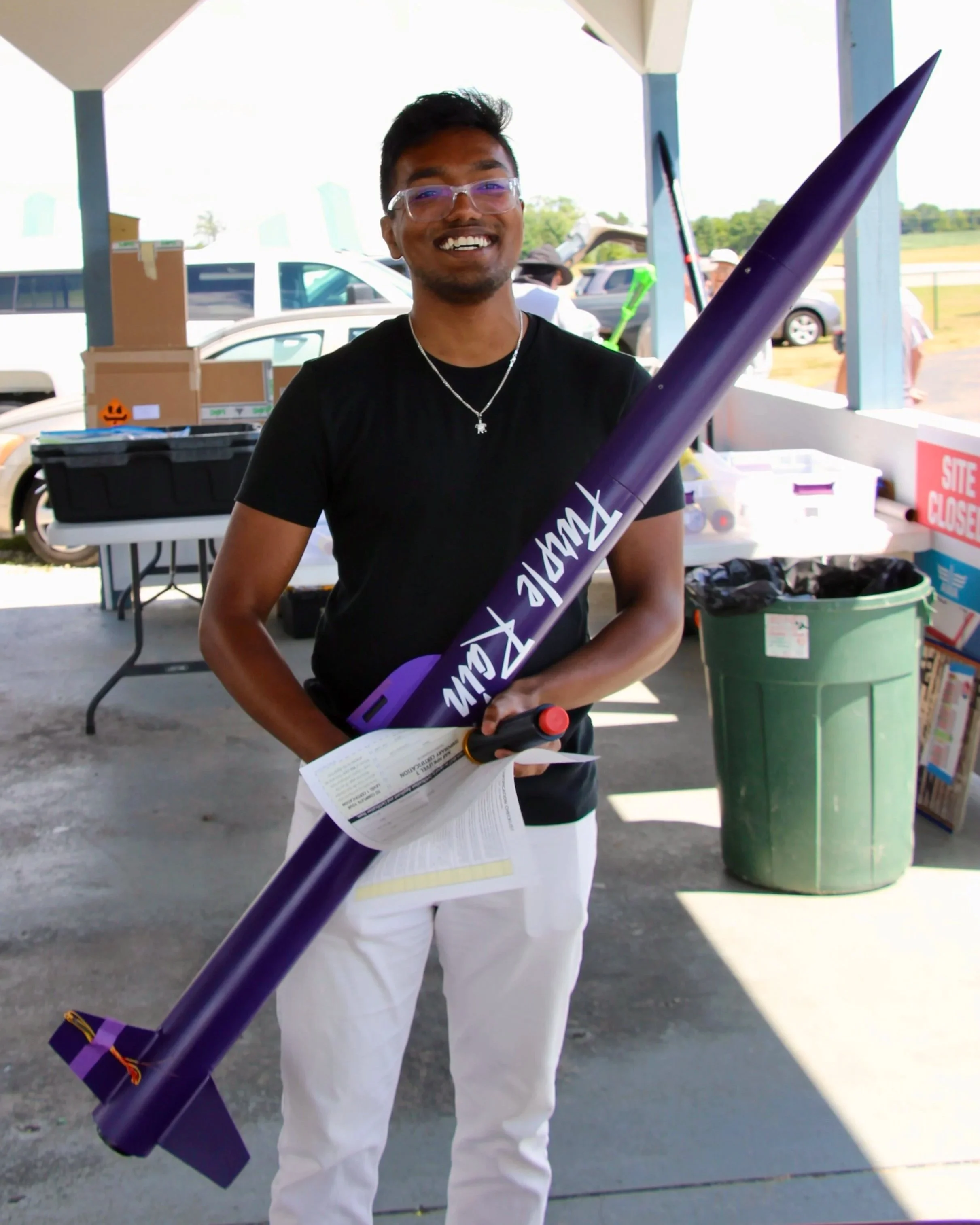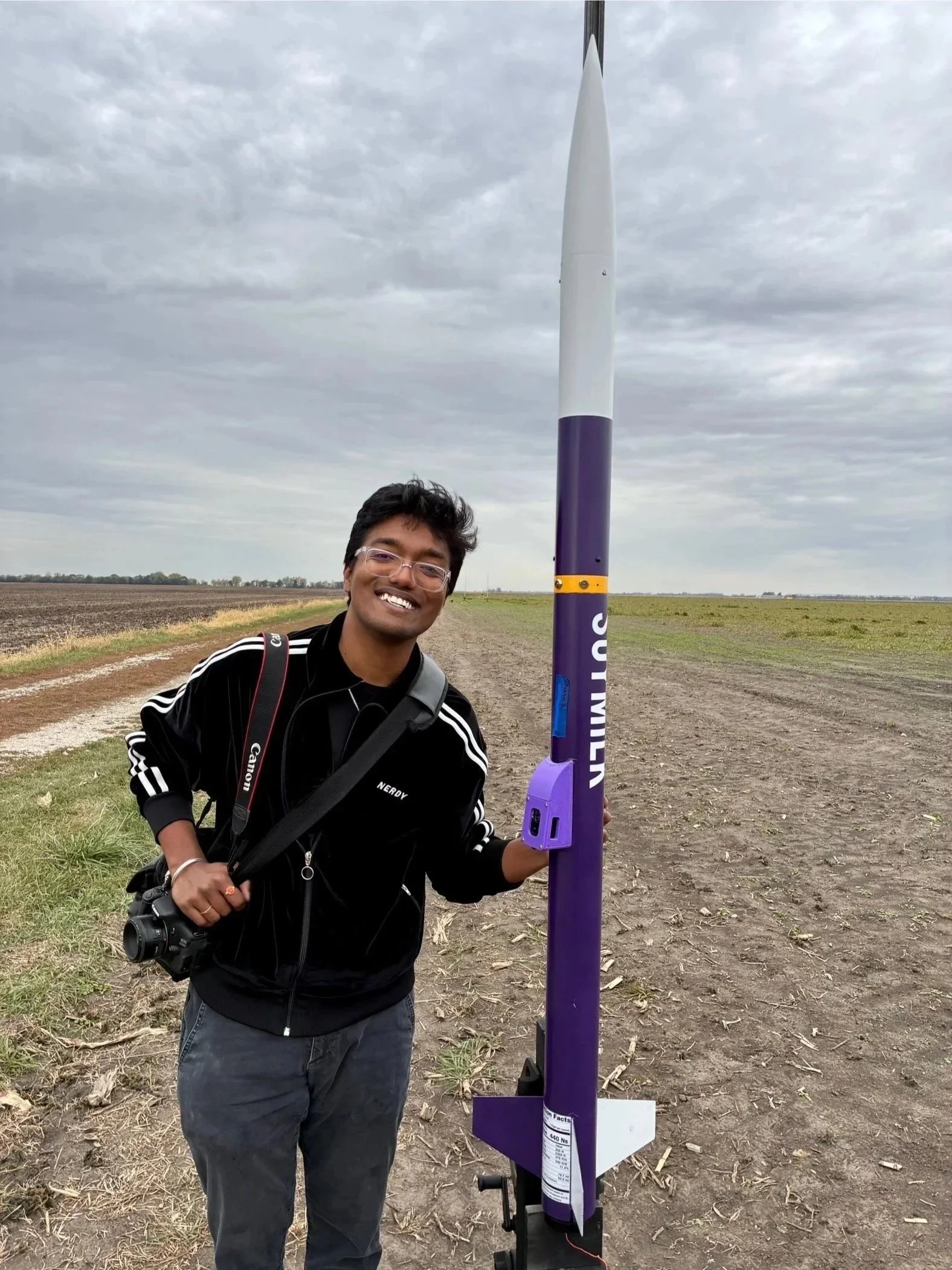 Purple Rain was my first real swing at high power certification. Bright purple paint, big motors, big goals, and a launch that taught me more than a perfect flight ever would. I lost the rocket in a soy field, but the real mission came back with me: learning recovery systems the hard way, understanding that analysis matters most when hardware is on the line, and realizing that every “uh oh” moment is just unpaid tuition. Purple Rain earned its place by pushing me forward, even when the landing spot had other plans.